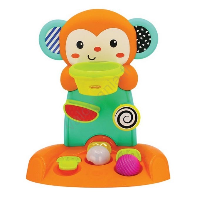 • Värikäs apinamallinen pelipöytä tarjoaa lapsellesi ensimmäisen harjoittelun koripallon heittämisessä.