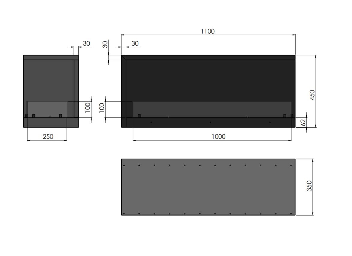 InFire - Kulma BIO takka 110x45 cm 3kW musta | Valomania