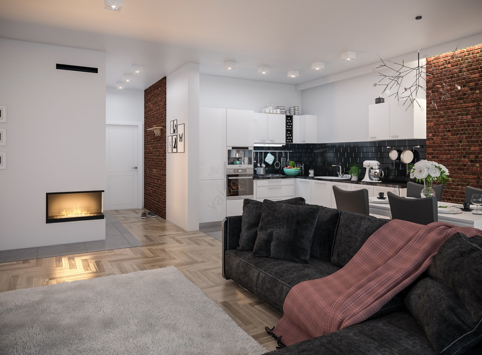 • Takka on varustettu kehyksellä, joka ulottuu tulipesän ääriviivojen ulkopuolelle ja ulottuu seinän yli.