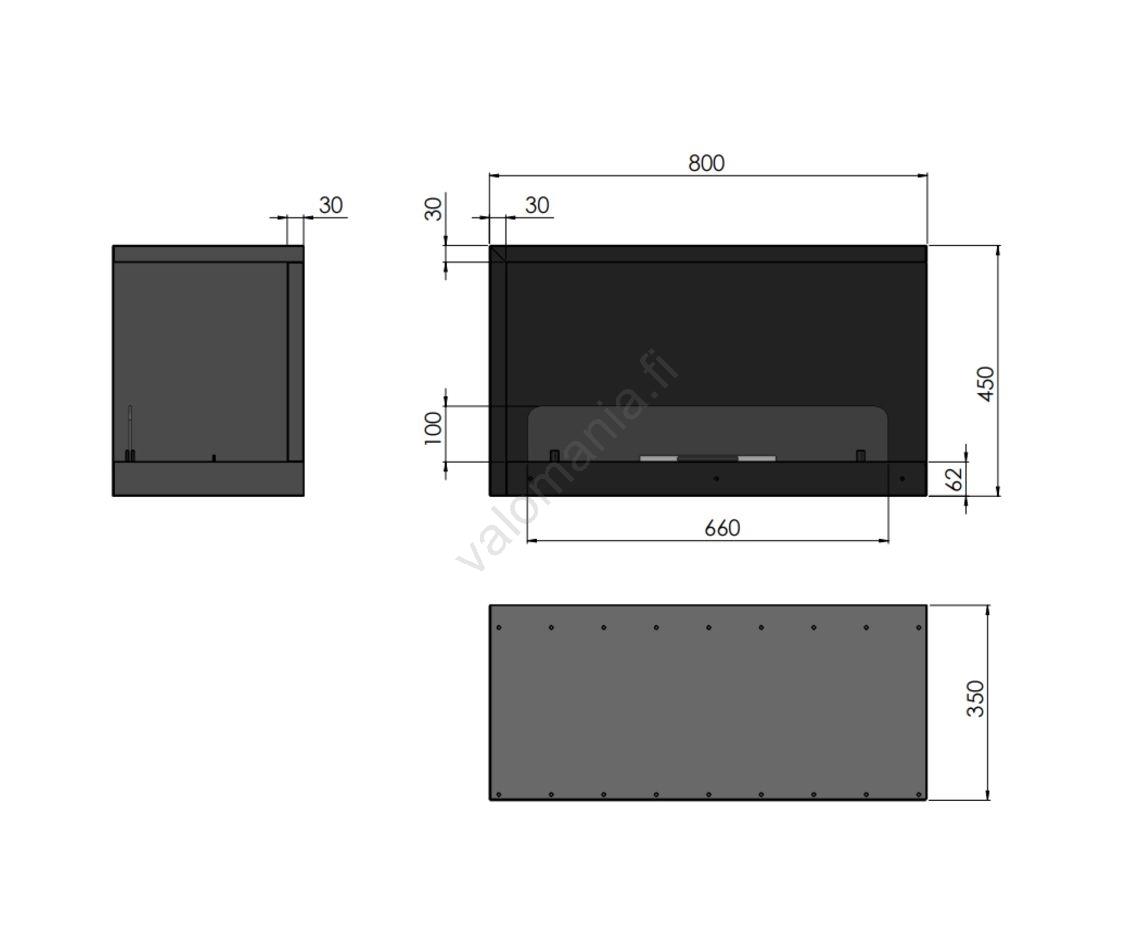 InFire - Kulma BIO takka 80x45 cm 3,5kW musta | Valomania
