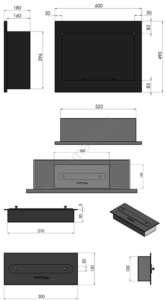 InFire - Sisäänrakennettava BIO-takka 49x60 cm 3 kW musta