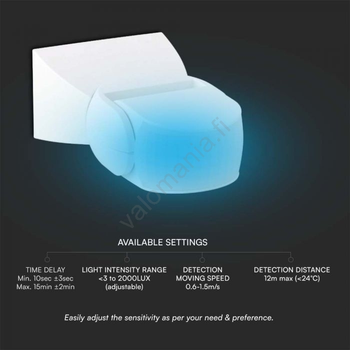 Infrapuna-ulkoliiketunnistin 180° 230V IP65 valkoinen | Valomania