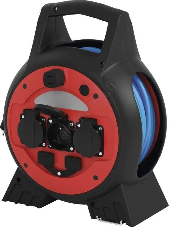Jatkojohto kelalla 3-osainen 20m punainen/musta IP44