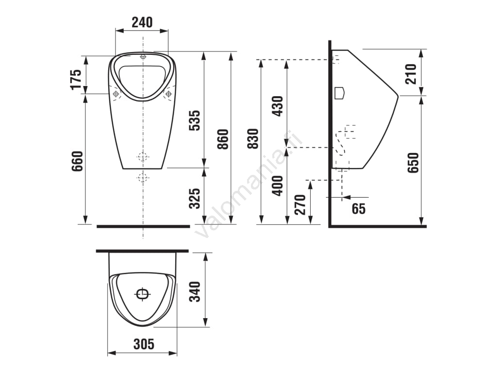• Tämän virtsanlaskijan voi liittää vaakasuoraan tai pystysuoraan hajulukkoon.