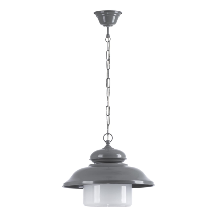 • Ketjulla varustettu kattokruunu metallivarjostimella, jossa on maitolasielementti.