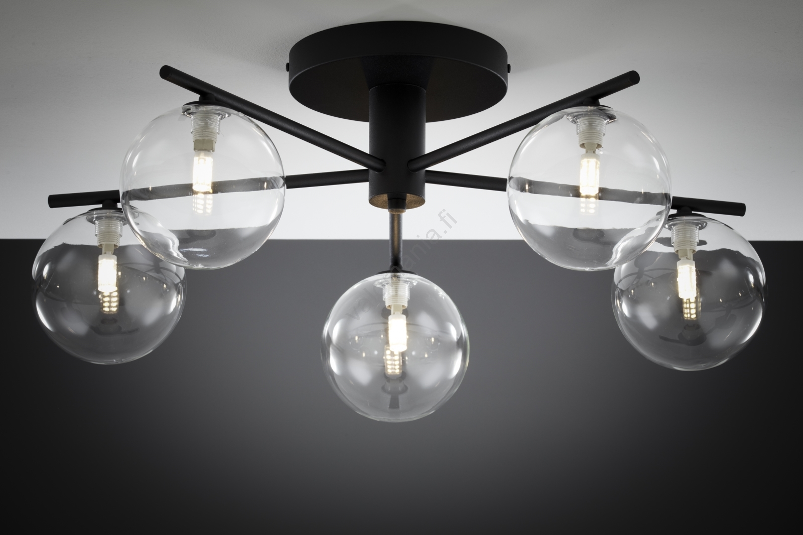 Jupiter 2046 - Kiinteä kattokruunu PRATO 5xG9/10W/230V musta/läpinäkyvä | Valomania