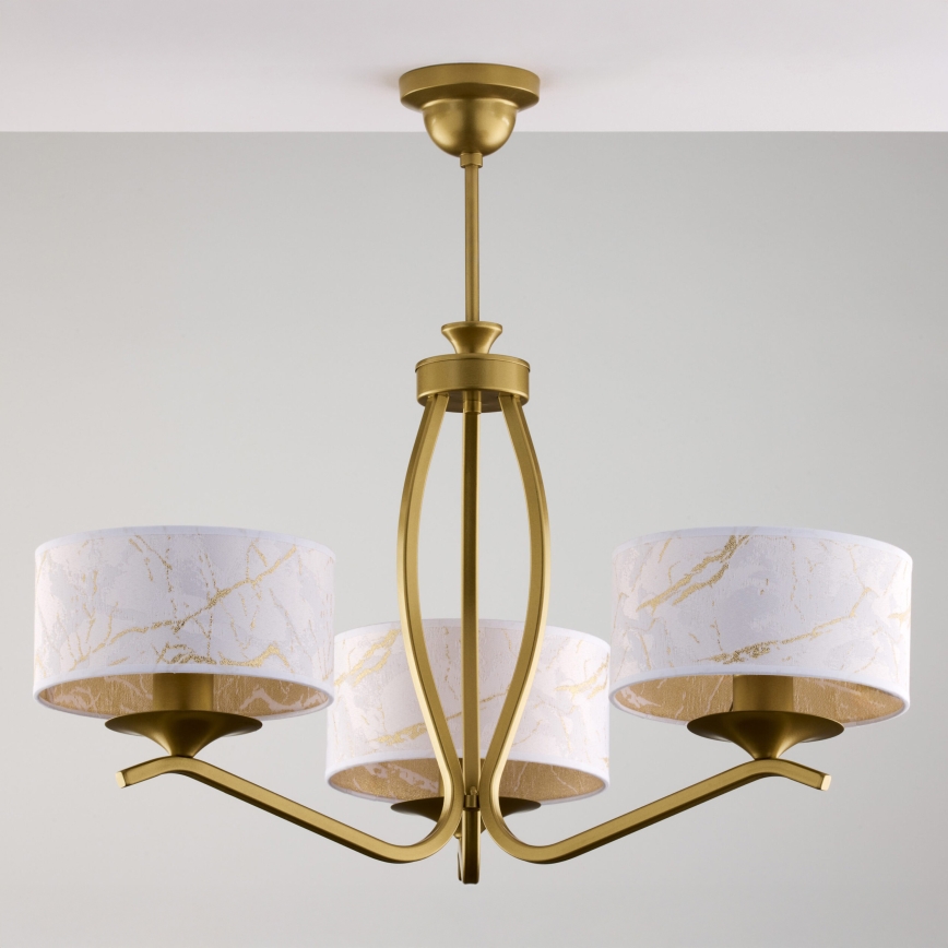Jupiter 2109 - Riippuvalaisin tangolla KASZMIR 3xE27/15W/230V valkoinen/kultainen/marmorikuviointi merkitsee kaunista ja toimivaa muotoilua.  Valoon sopii polttimo, jossa on E27-kanta. Täältä voit ostaa myös muita lamppuja edulliseen hintaan. Mielenkiintoinen lisä kotiisi.