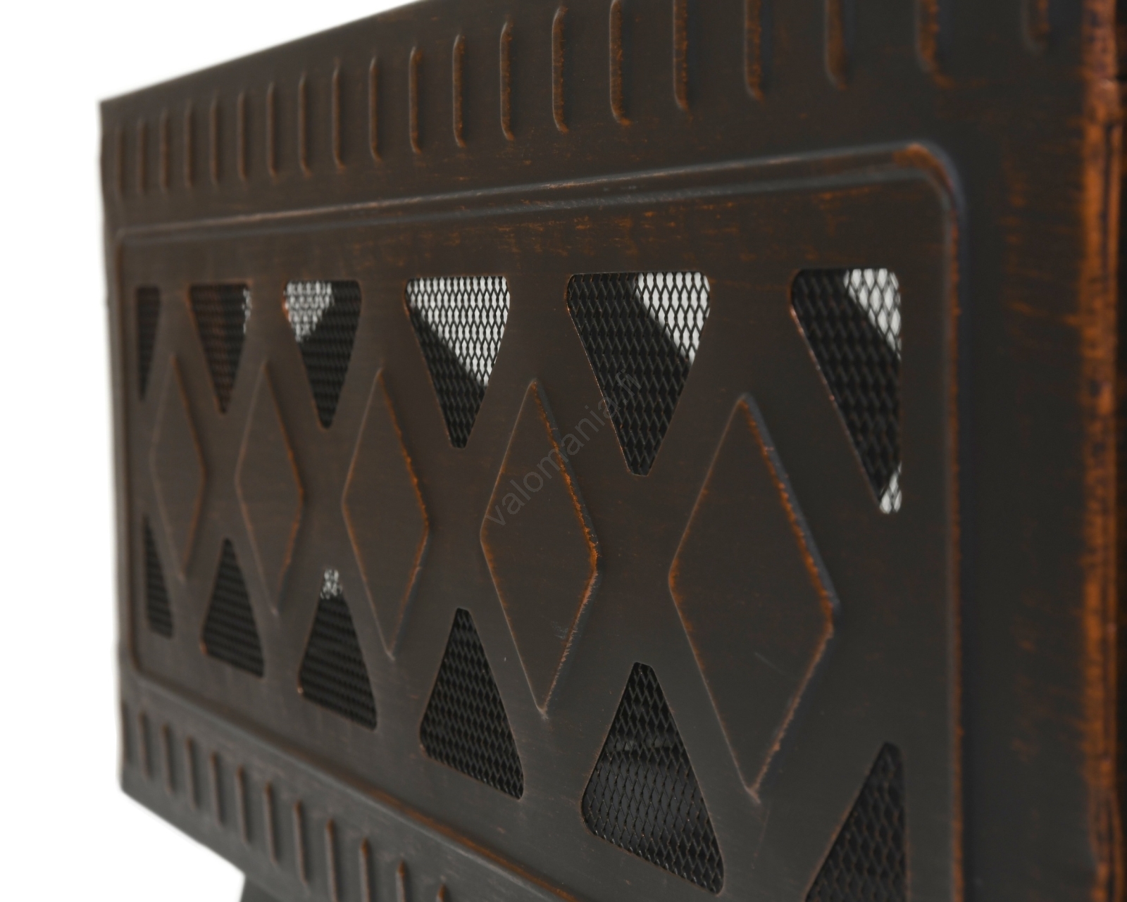 • Leirinuotion rakenne on valmistettu korkealaatuisesta teräksestä, jossa on korkean lämpötilan musta/kuparimaali, jossa on patinaa.