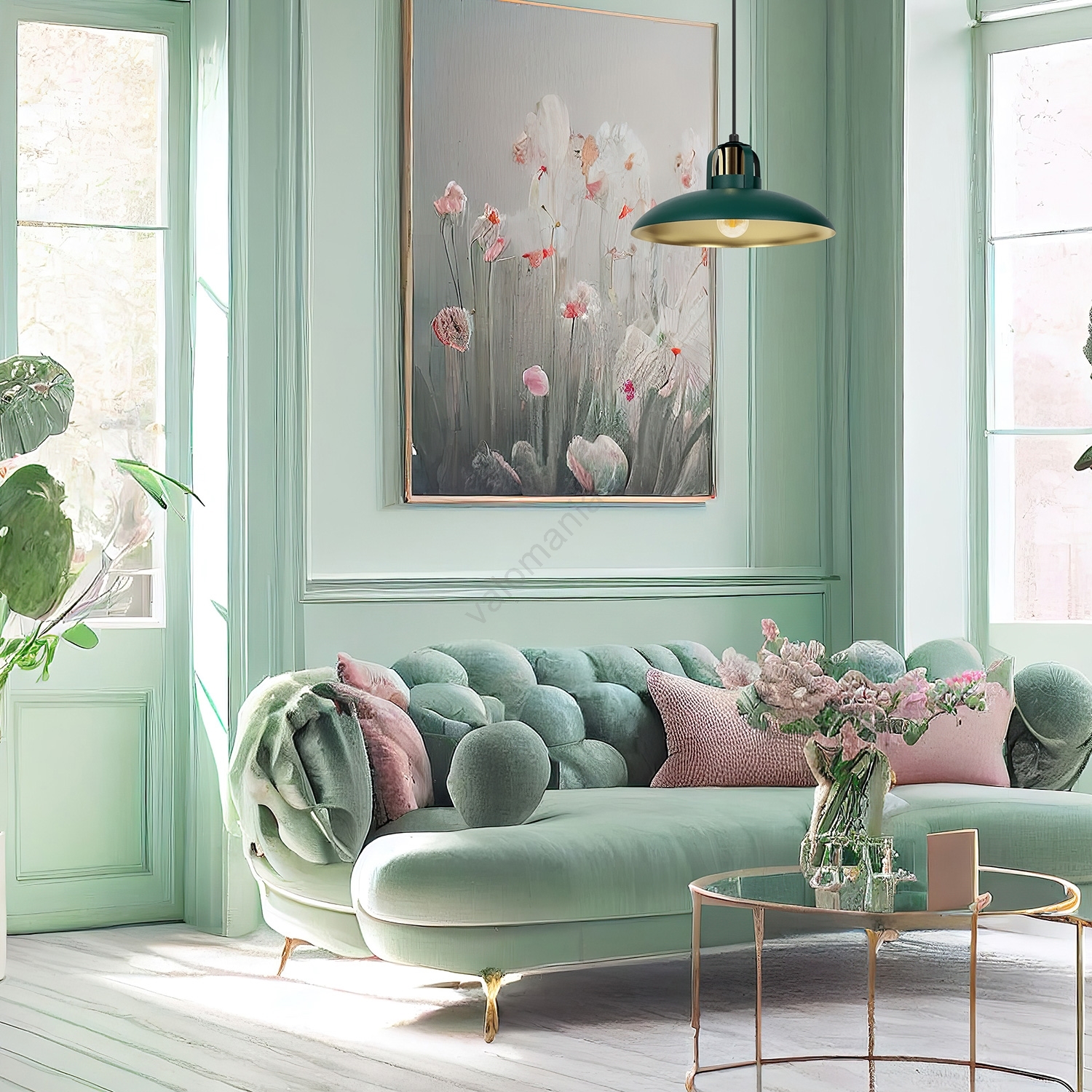 Kattokruunu johdossa FELIX 1xE27/60W/230V vihreä | Valomania