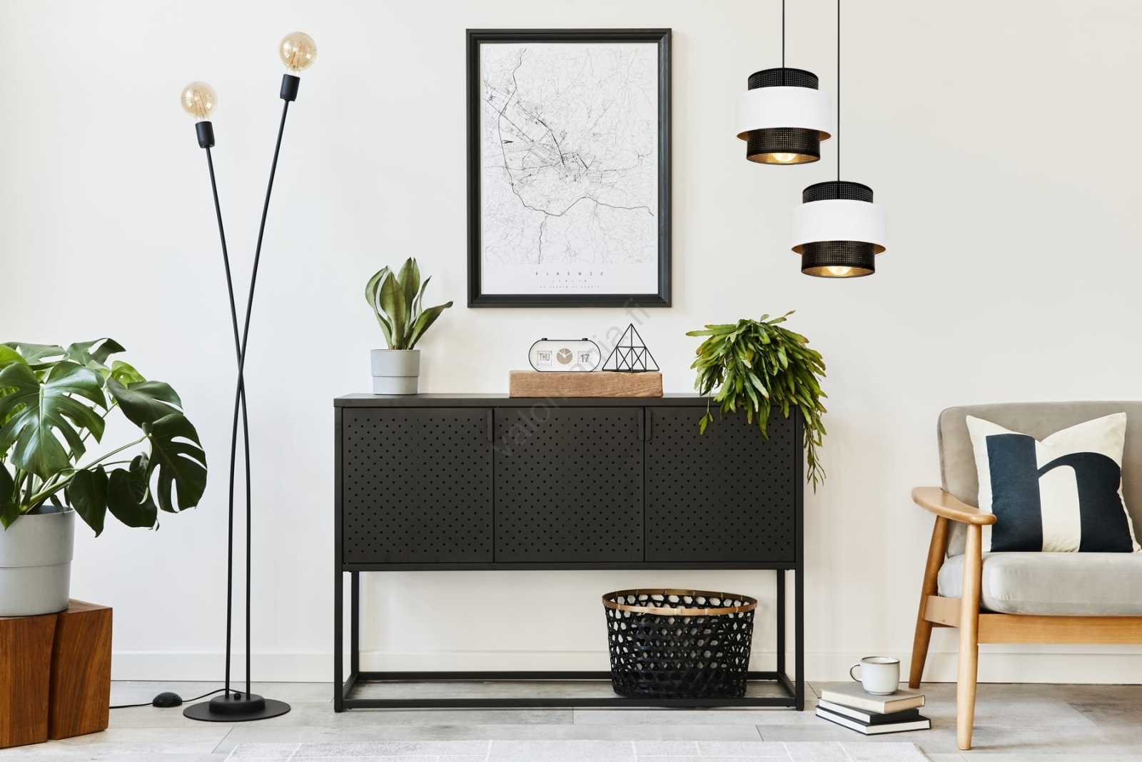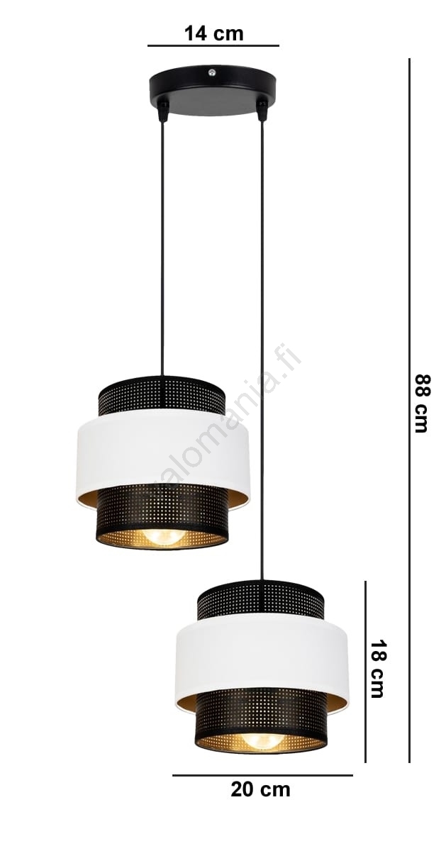 Kattokruunu johdossa NESS 2xE27/60W/230V halkaisija 30 cm musta/valkoinen merkitsee kaunista ja toimivaa muotoilua.  Valoon sopii polttimo, jossa on E27-kanta. Täältä voit ostaa myös muita lamppuja edulliseen hintaan. Mielenkiintoinen lisä kotiisi.