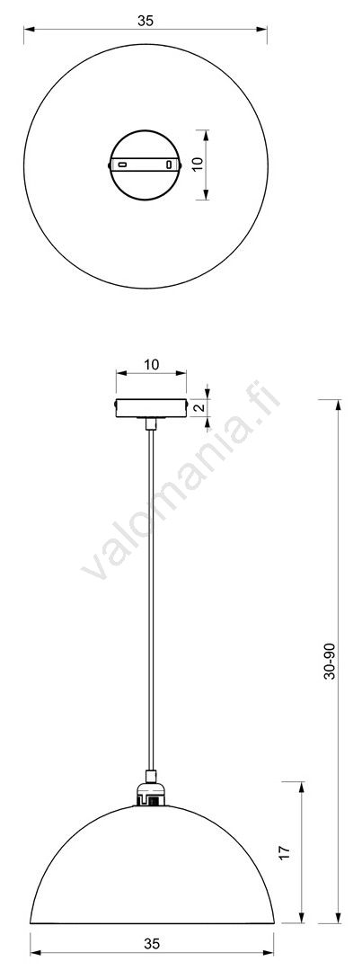 Kattokruunu johdossa BETA 1xE27/60W/230V d. 35 cm valkoinen | Valomania
