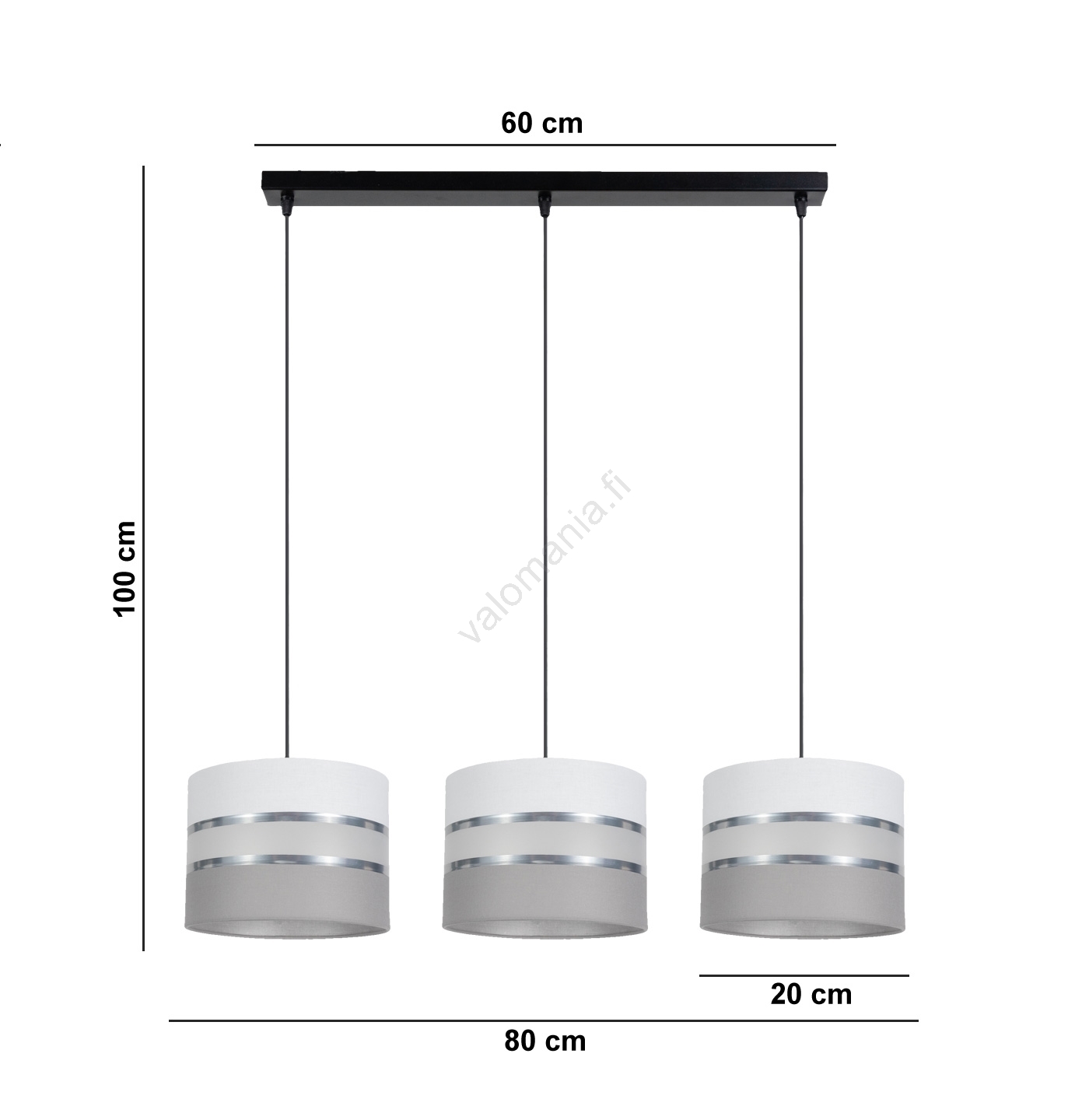 Kattokruunu johdossa CORAL 3xE27/60W/230V valkoinen/harmaa | Valomania