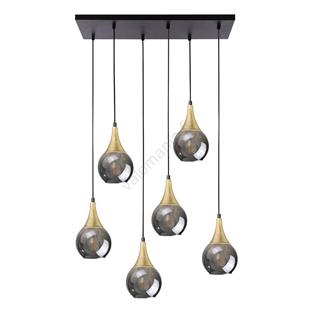 Kattokruunu johdossa LACRIMA SMOKY 6xE27/60W/230V musta/kulta/savuinen musta | Valomania