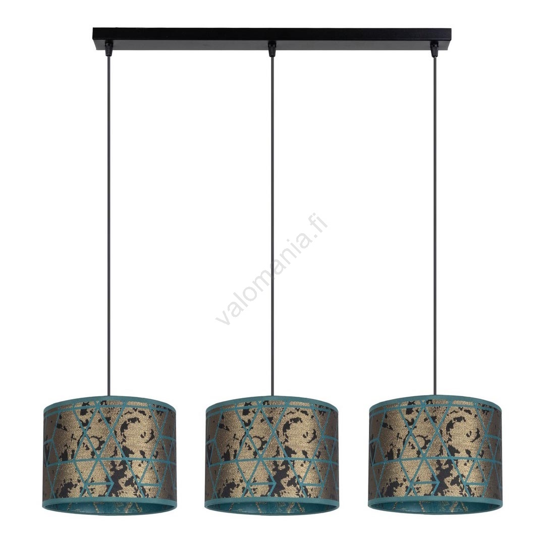 Kattokruunu johdossa REZO 3xE27/60W/230V kulta/turkoosi | Valomania
