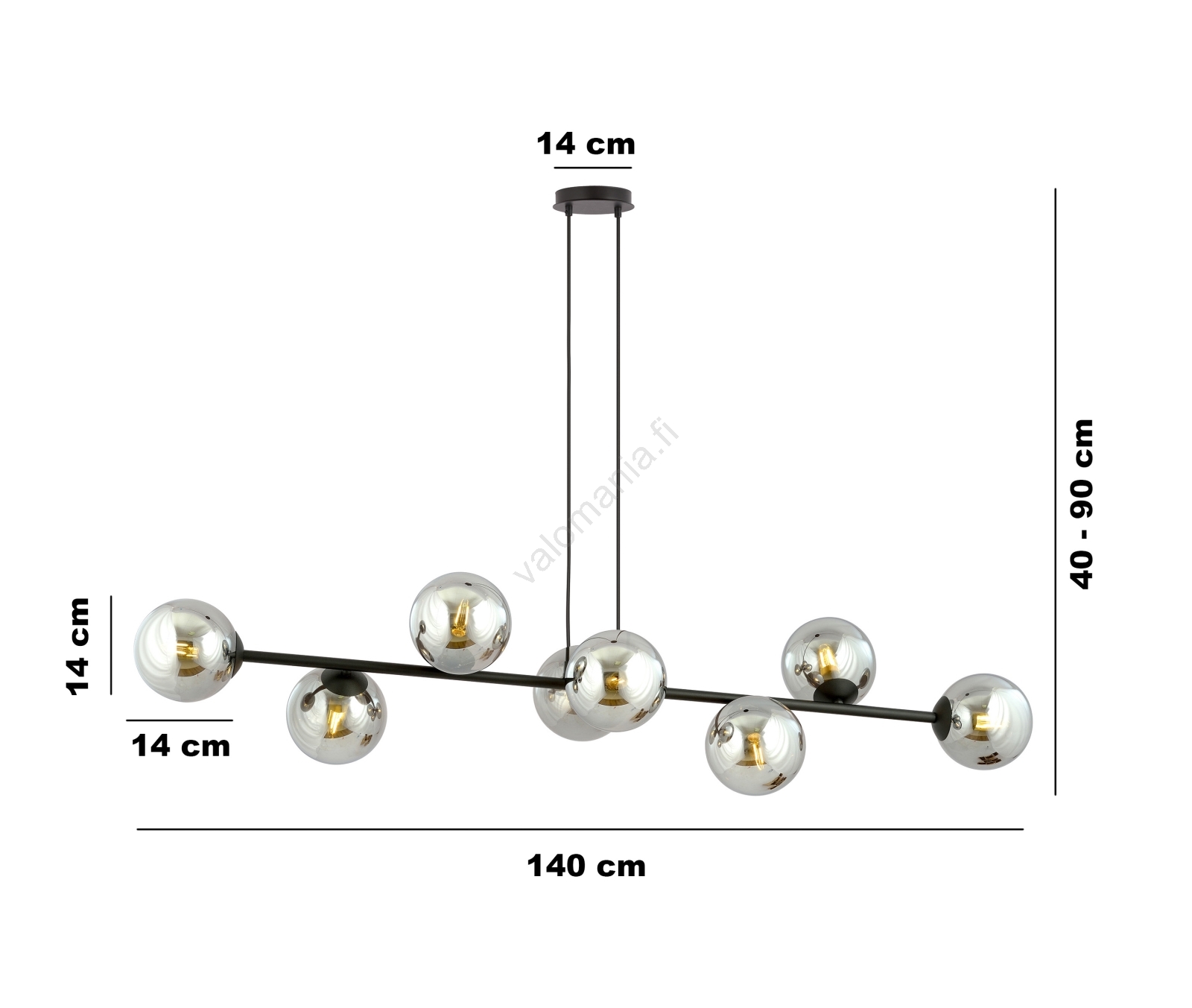 • Kattokruunu johdossa ROSSI 8xE14/10W/230V musta/läpinäkyvä