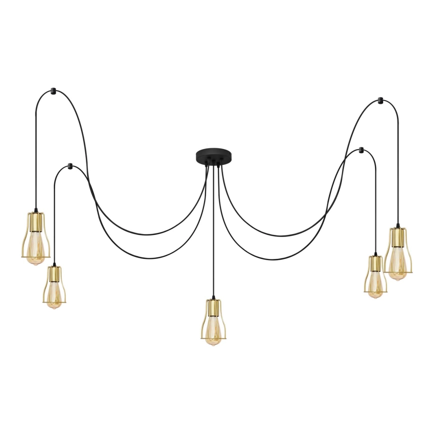Kattokruunu johdossa TUBE 5xE27/15W/230V hämähäkki musta/kulta | Valomania