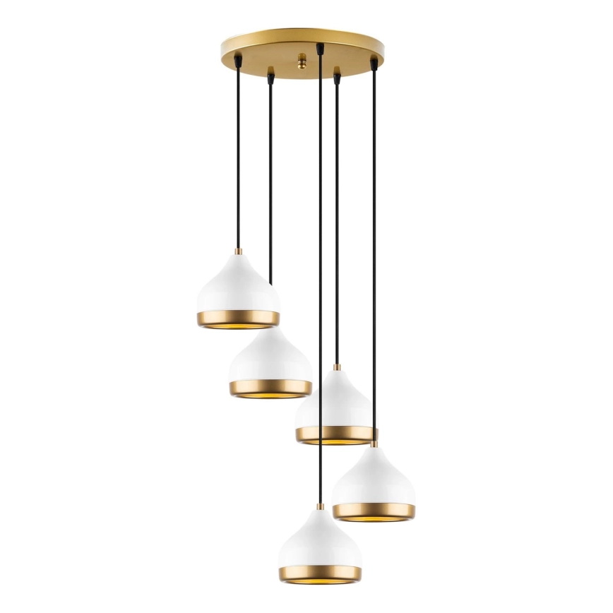 Kattokruunu johdossa YILDO 5xE27/40W/230V valkoinen/kulta | Valomania