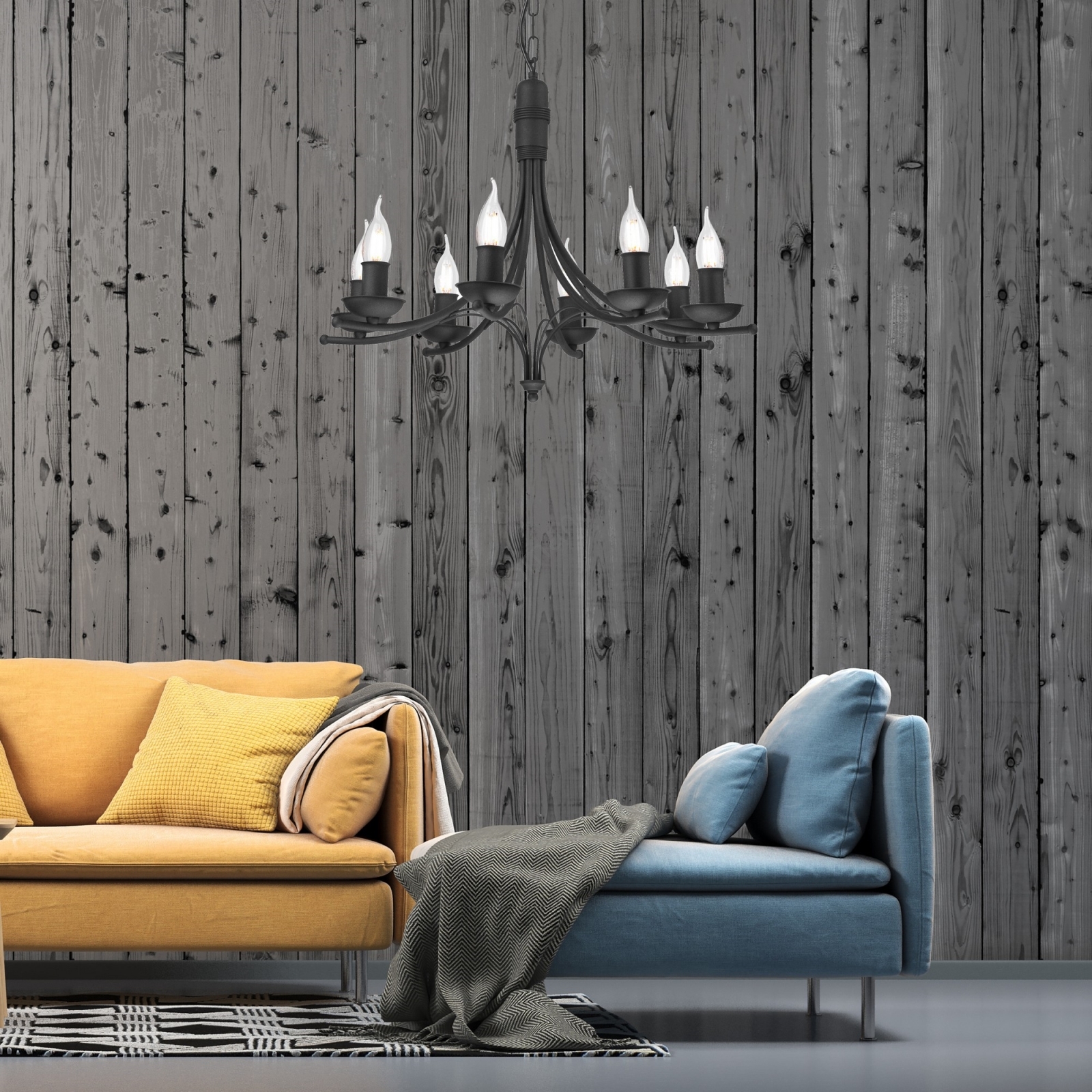 Kattokruunu ketjussa LUCY 8xE14/60W/230V musta merkitsee kaunista ja toimivaa muotoilua.  Valoon sopii polttimo, jossa on E14-kanta. Täältä voit ostaa myös muita lamppuja edulliseen hintaan. Mielenkiintoinen lisä kotiisi.