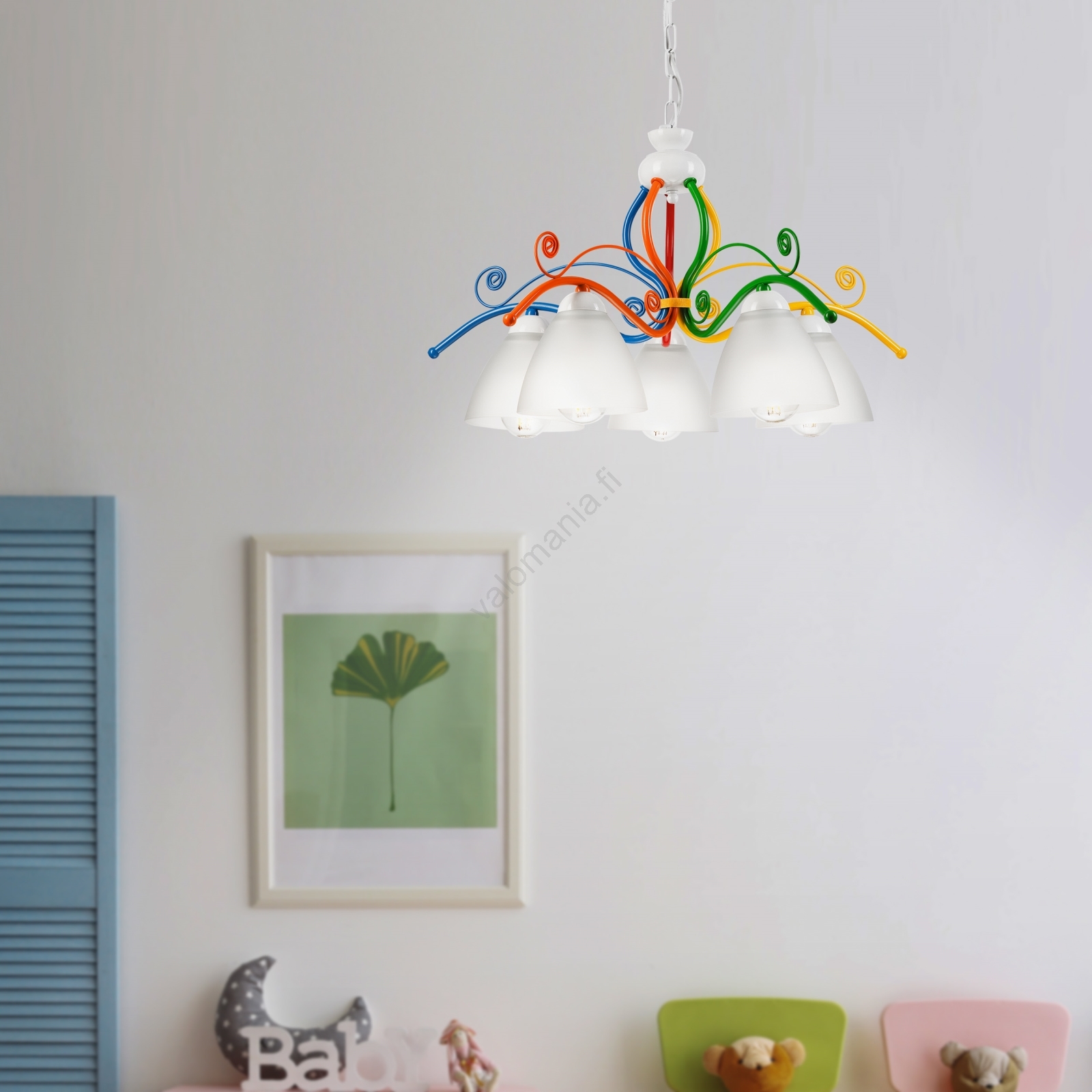 Kattokruunu ketjussa RETRO 5xE27/60W/230V valkoinen/värikäs | Valomania