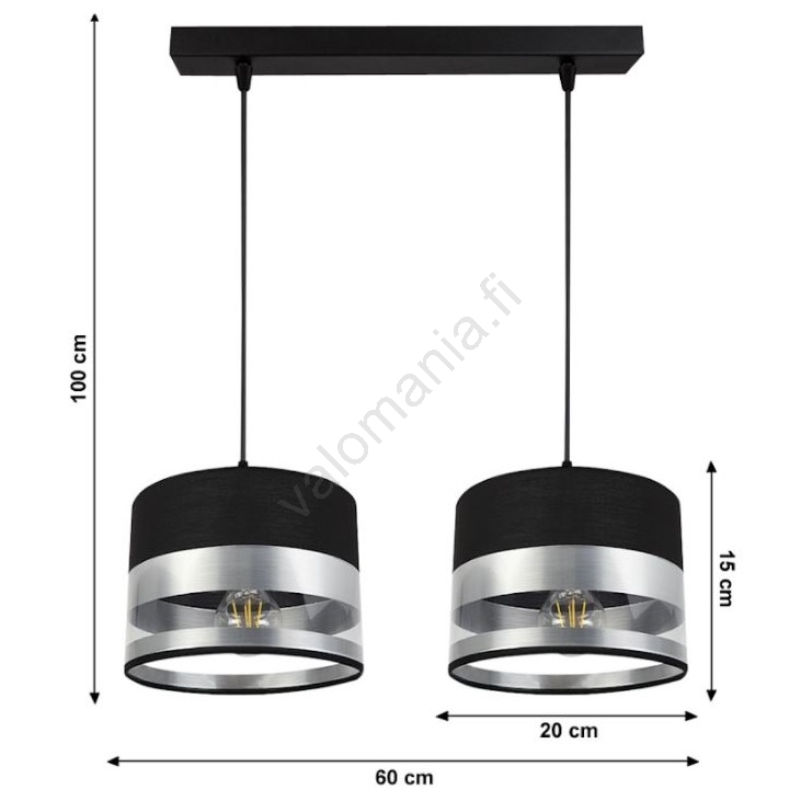 • Kattokruunu narussa MILO 2xE27 / 60W / 230V hopea / musta