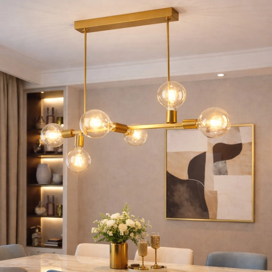 Kattokruunu tangossa ASTRID 6xE27/60W/230V kulta | Valomania