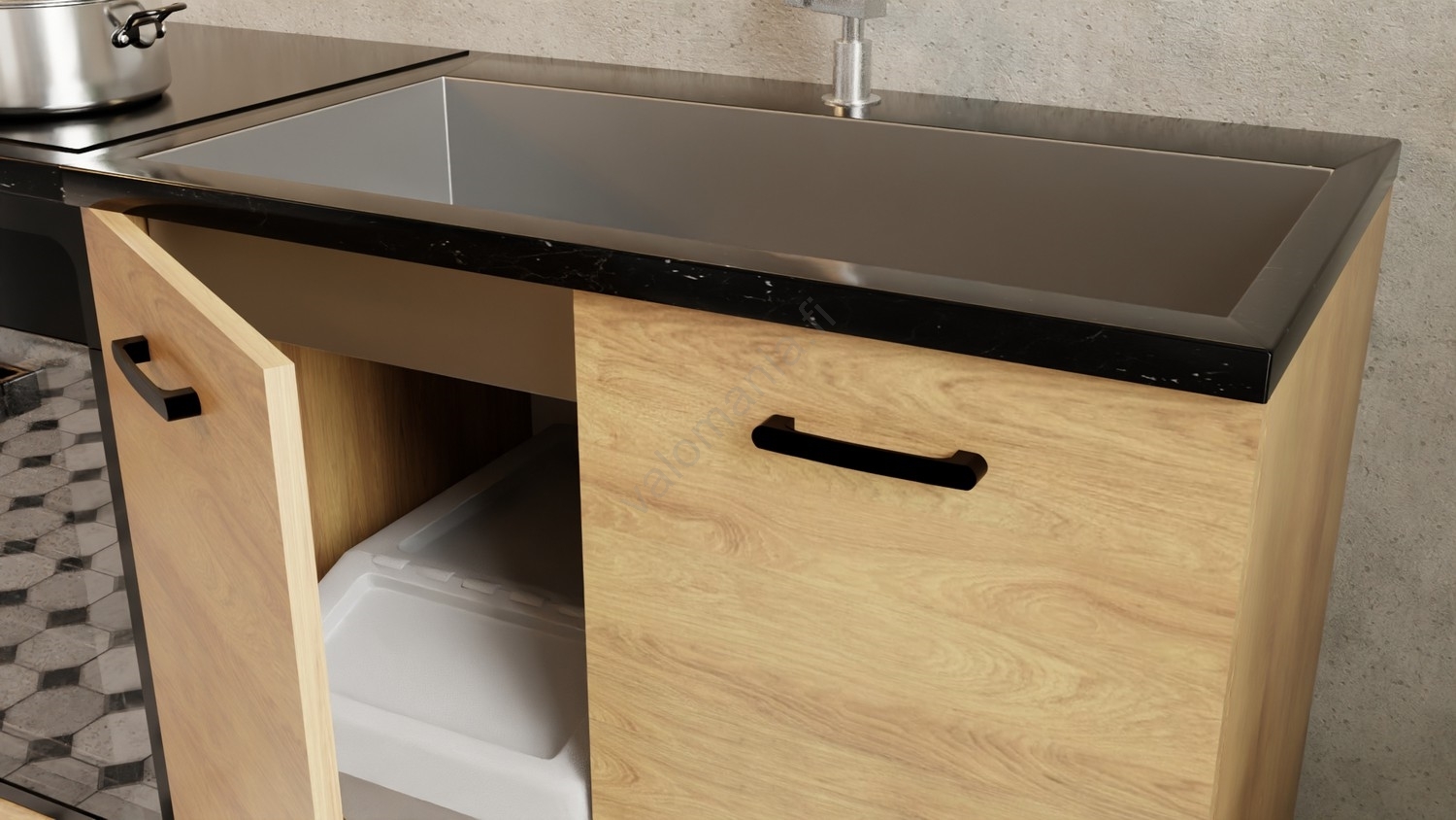 • Kaappien järjestely on modulaarinen, keittiön voit räätälöidä omien toiveidesi mukaan.