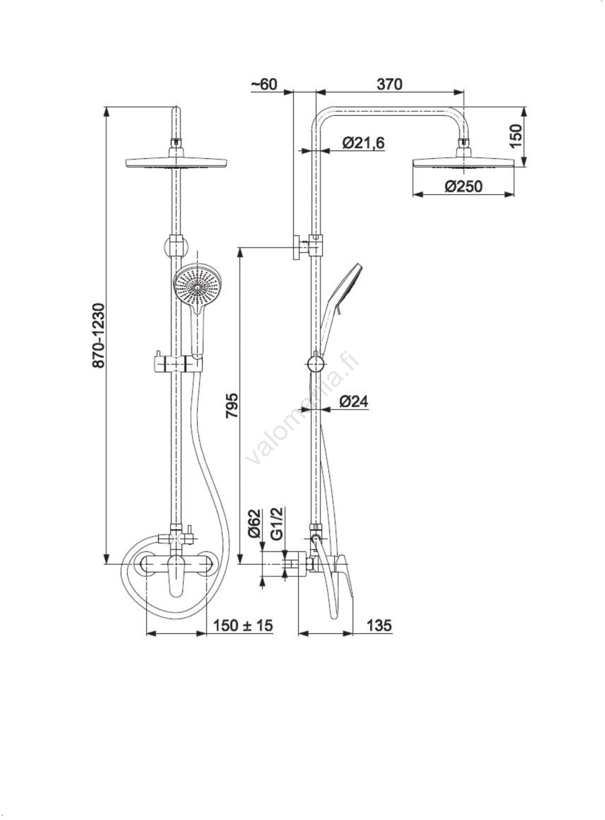 • Säätöosa: 35 mm keraaminen patruuna.