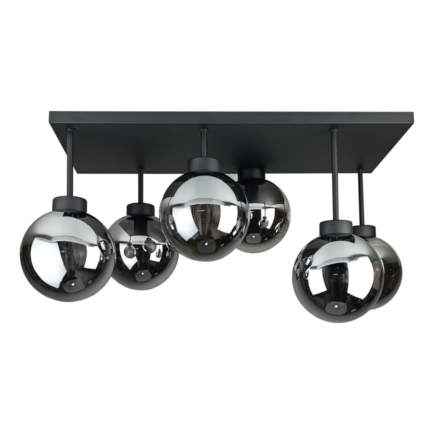 Kiinteä kattokruunu DEA 6xE14/60W/230V musta/savuinen musta | Valomania