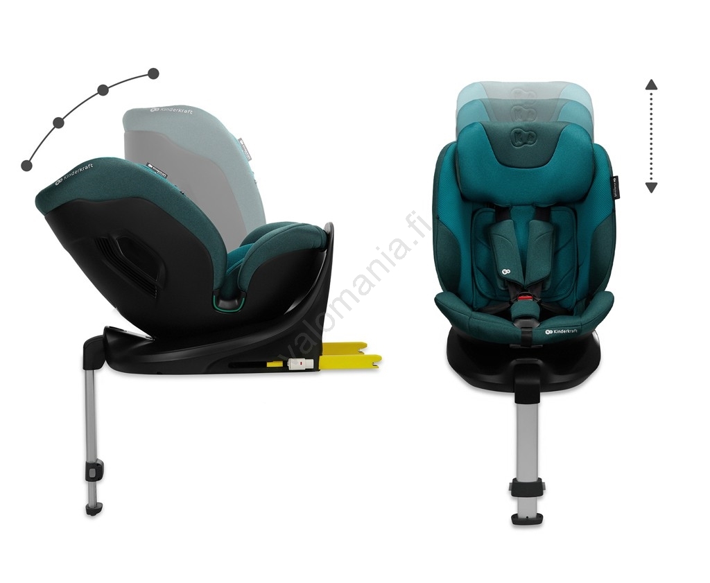 • RECLINING-toiminto tarjoaa kahdeksan kallistusasentoa — neljä taka-asentoa matkustettaessa vastakkaiseen ajosuuntaan ja neljä etu-asentoa matkustettaessa ajosuuntaan, mahdollistaen mukavan istuma- ja nukkuma-asennon.