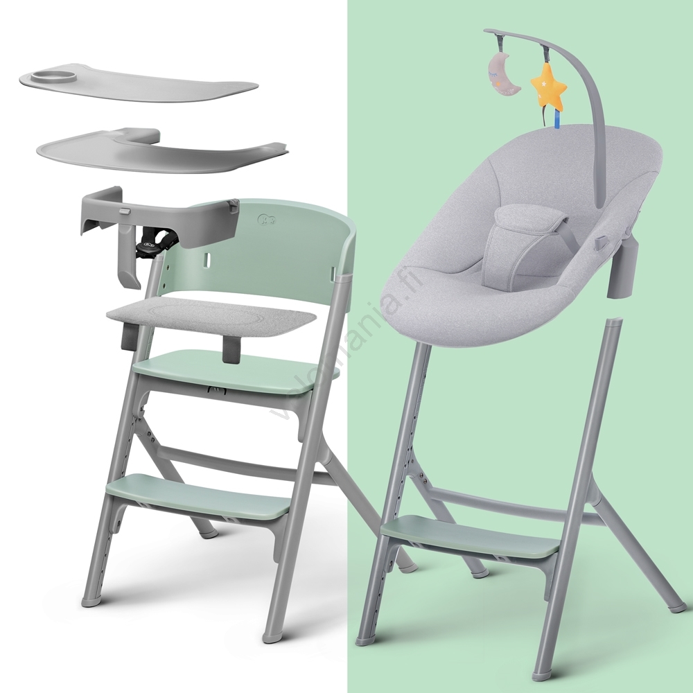 KINDERKRAFT SELECT-Lasten ruokapöydän tuoli LIVY Premium Olive vihreä + lepotuoli CALMEE | Valomania