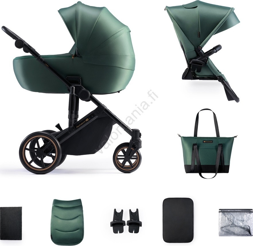 • Pakettiin sisältyy käytännöllisiä lisävarusteita, kuten hoitolaukku hoitoalustalla, sadesuoja, hyttysverkko, yleisadapterit, vaunukopan patja ja jalkapeite.