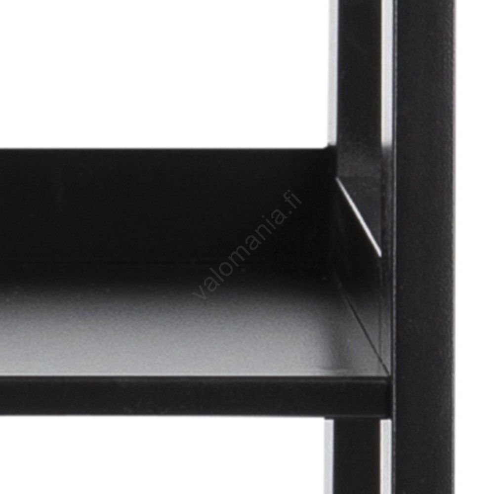 • Runko ja jalusta mustaa NC-lakattua MDF-levyä, 4 hyllyä mustaa UV-lakattua MDF-levyä.