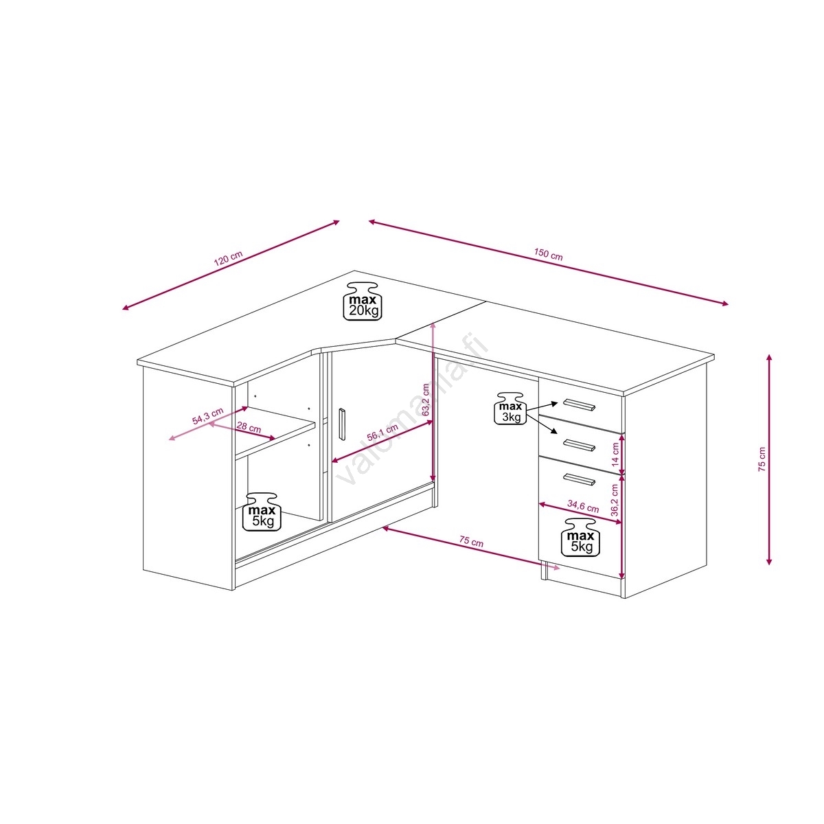 • Yksinkertaisen rakenteensa ansiosta se sopii erinomaisesti pieniin kotitoimistoihin, opiskelijan huoneisiin tai luoviin työtiloihin.