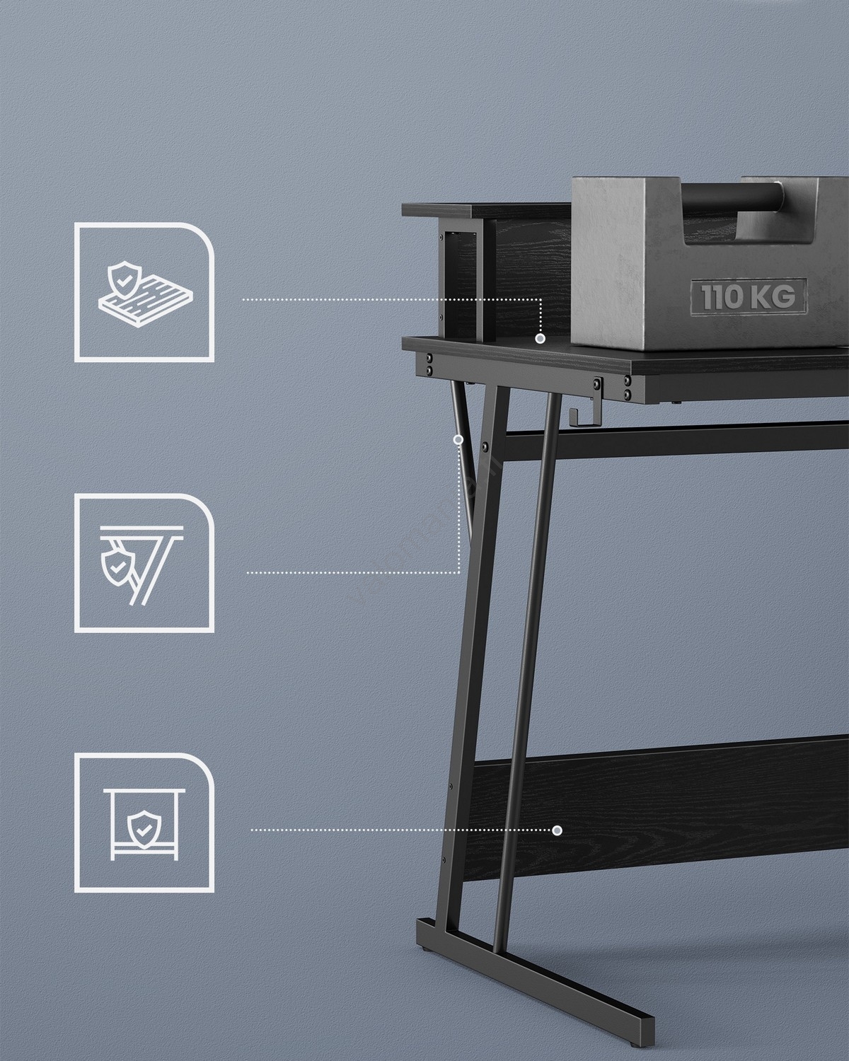 • Pöytä sopii jokaiseen sisustukseen – olipa se tarkoitettu pelaamiseen tai toimistotyöhön.