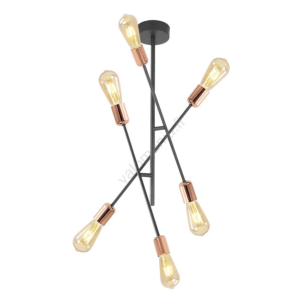Kattokruunu tangossa SUORA 6xE27/15W/230V musta/kupari