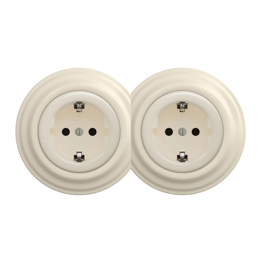Kliklap - Kaksoispistorasia retrotyylillä kotikäyttöön, kehys SCHUKO 230V/16A, beige | Valomania