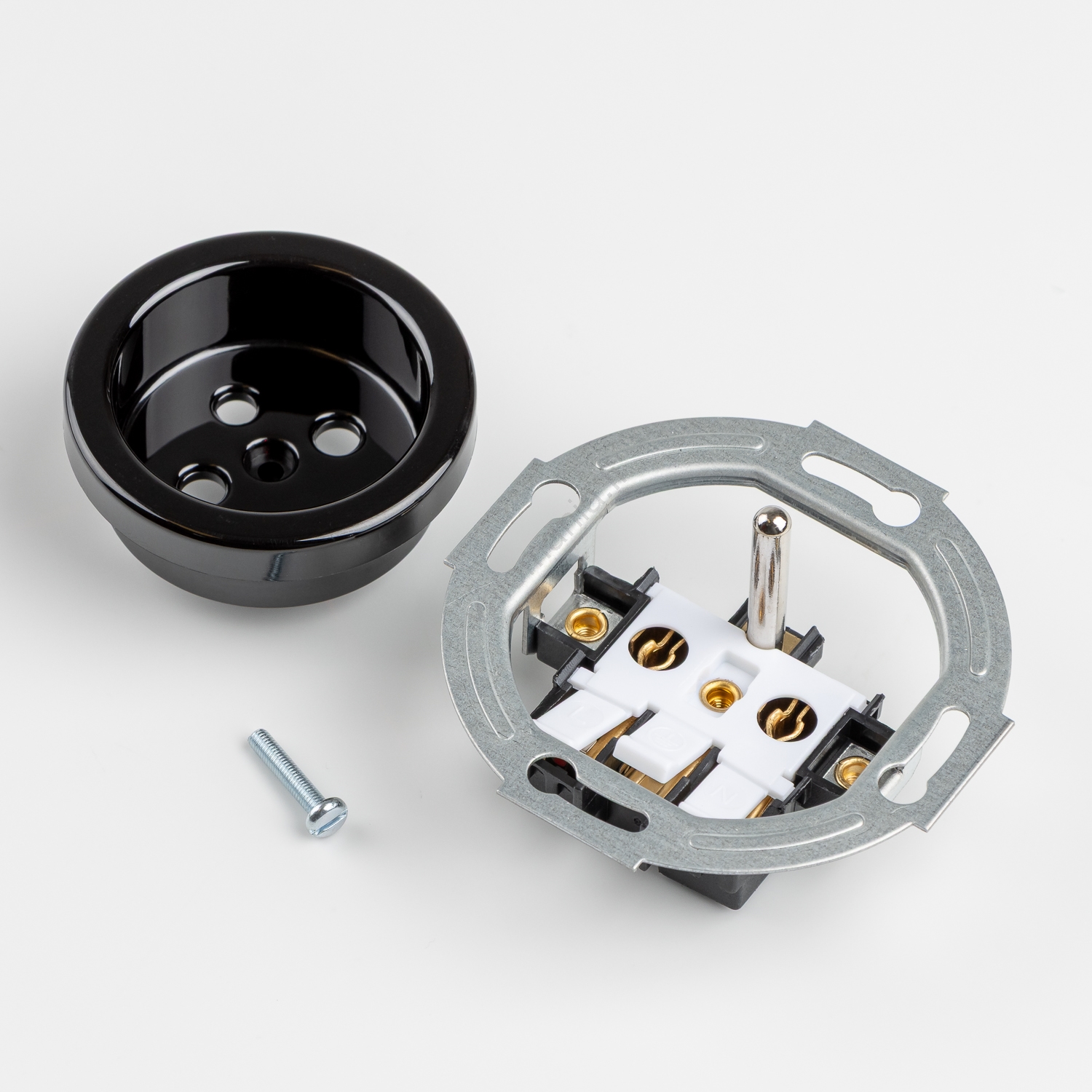 • Kliklap - retro-tyylinen kaksoispistorasia kotikäyttöön, kehyksellä, 230 V, keraaminen, valkoinen
