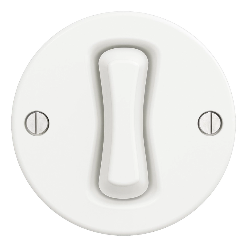 • Pyöreä kytkin keramiikanvalkoisessa sävyssä.