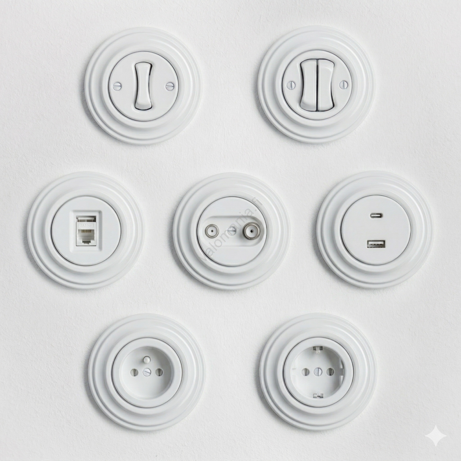 • Kliklap - Retro TV+R -pistorasia (pääte) kehyksellä, keramiikanvalkoinen