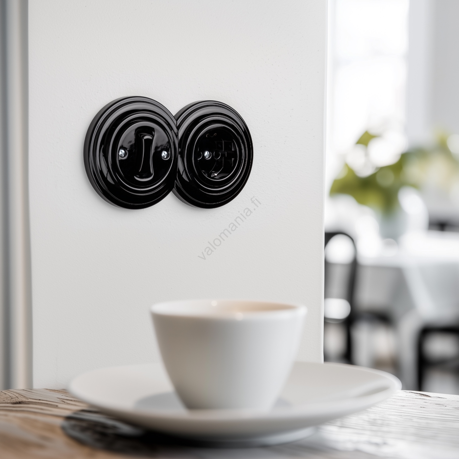• Kliklap - Retro yksinapainen kytkin nro 1 ja SCHUKO 230V pistorasia kehyksellä, musta