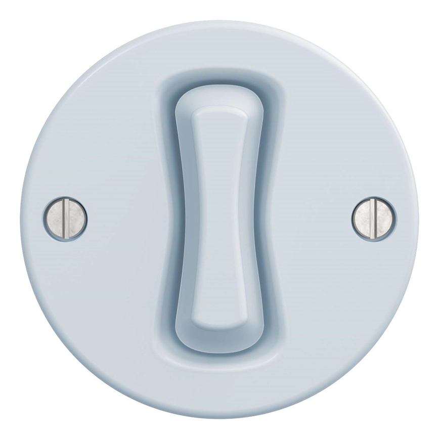 • Pyöreä kytkin taivaansinisen sävyssä.