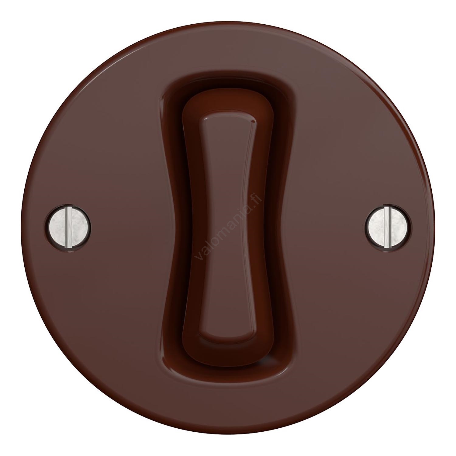 • Pyöreä kytkin ruskeassa värissä.