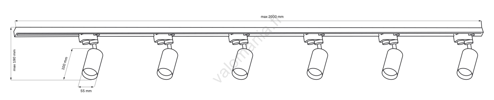 Kohdevalo kiskojärjestelmään PARIISI 6xGU10/10W/230V +2x1 m kisko systeemi | Valomania