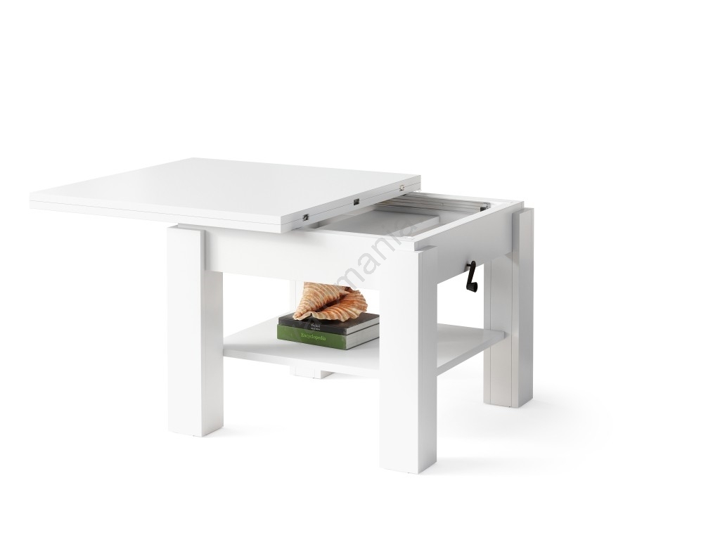 • Muunneltava sohva- ja ruokapöytä CALEB, nostettavalla pöytälevyllä, valkoinen