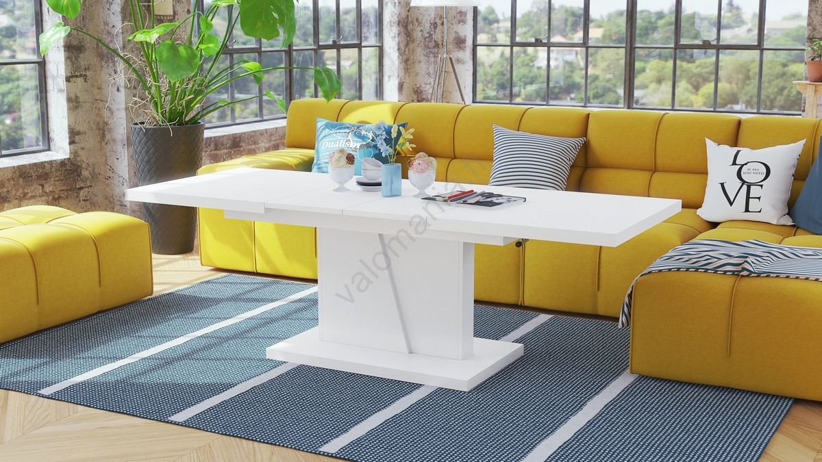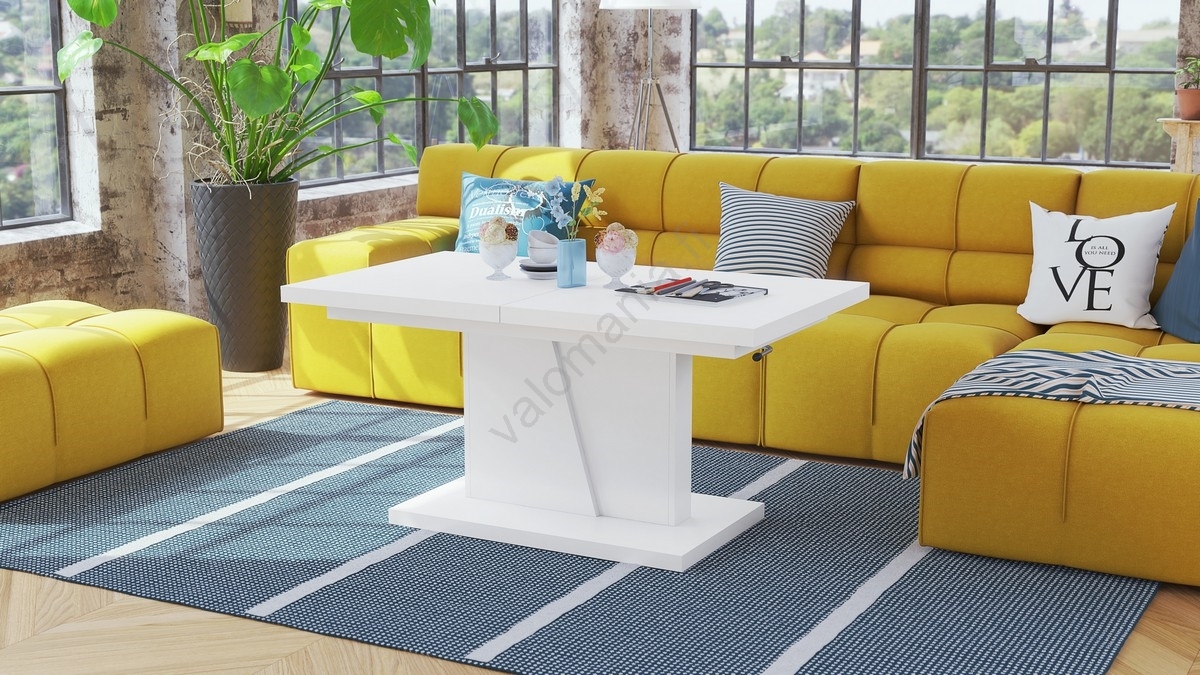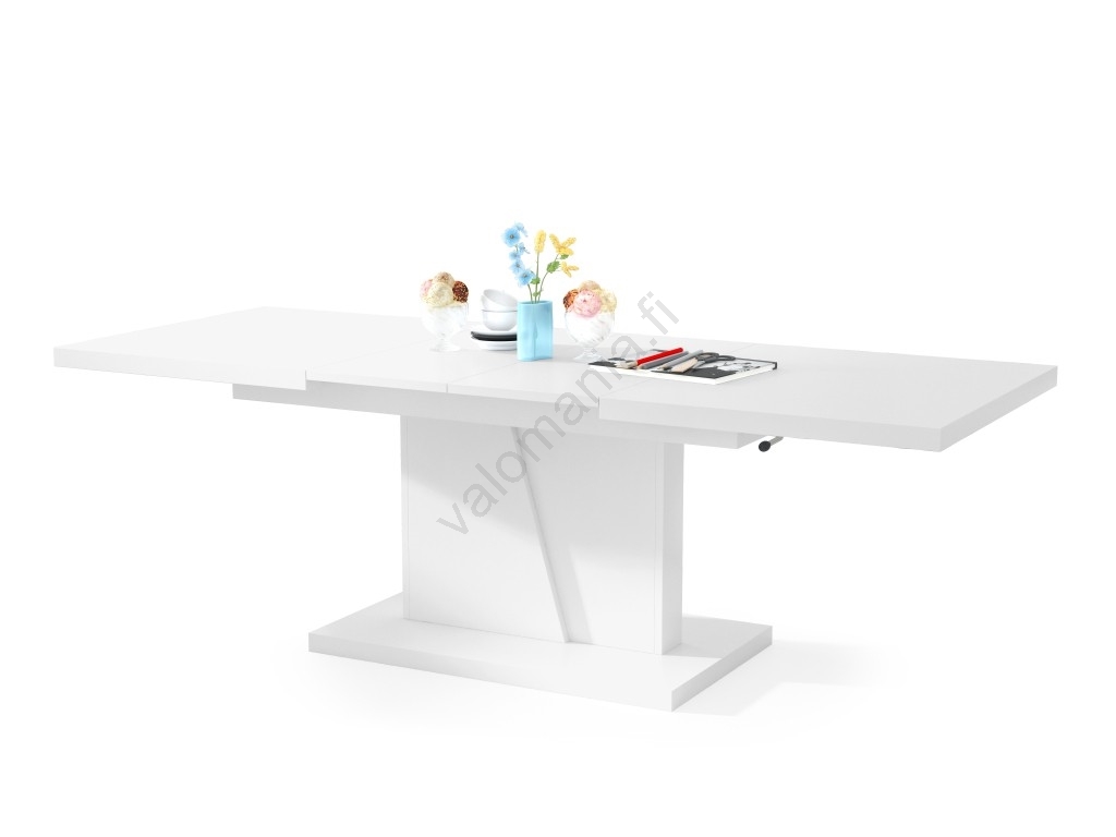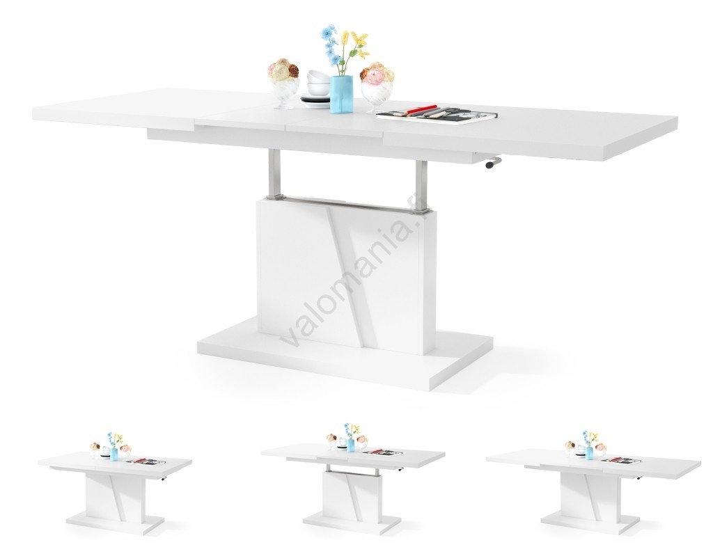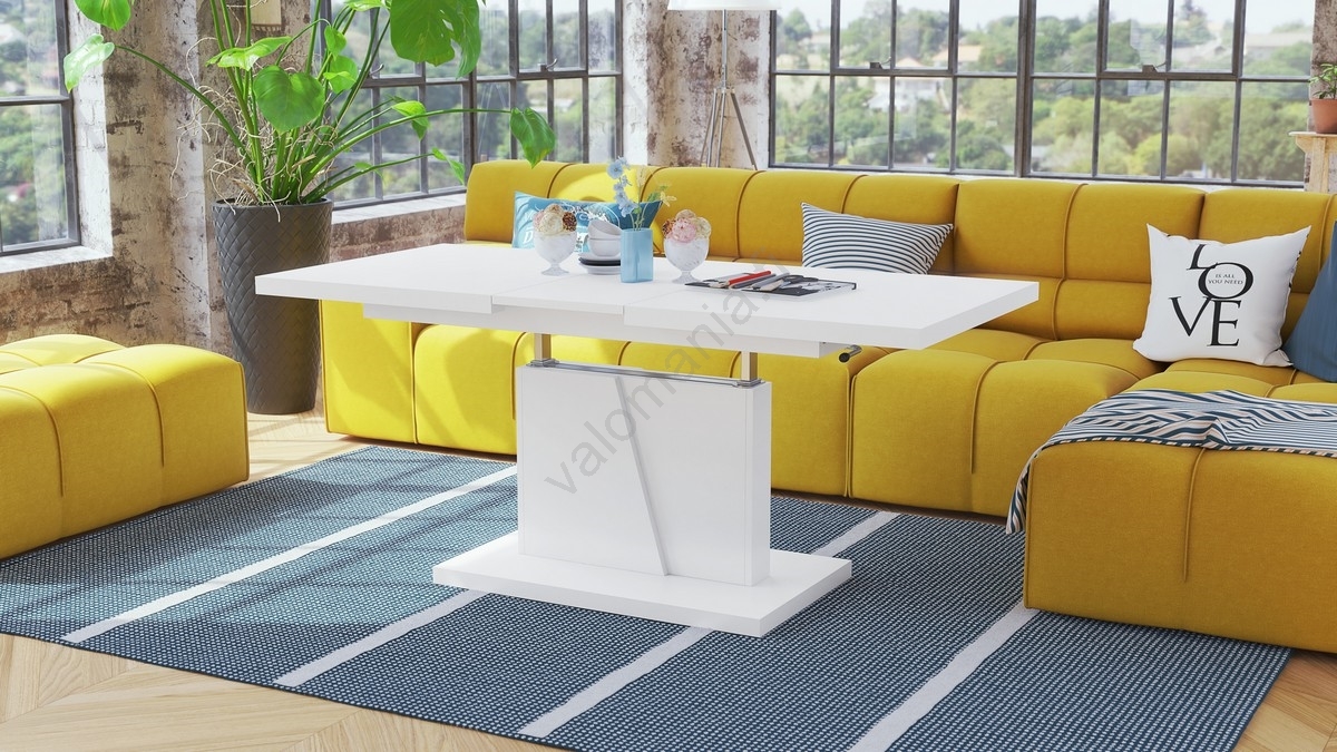 Muunneltava sohvapöytä/ruokapöytä NINO, nostettavalla pöytälevyllä, valkoinen | Valomania