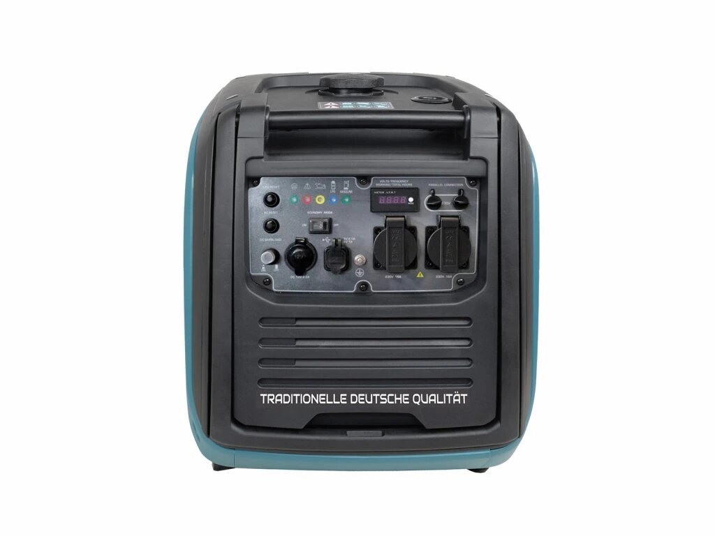 • Ergonomisessa ohjauspaneelissa on LED-näyttö, kaksi USB-porttia 5 V/1 A, 5 V/2,1 A, 12 V autoliitäntä, ECONOMY MODE -kytkin, toimintatilan ilmaisimet, rinnakkaisgeneraattorilähtö kaksoisvirranottoa varten ja RESET-painike nollataksesi ohjausjärjestelmän (kun katkaisija laukeaa) ja palauttaaksesi virran.