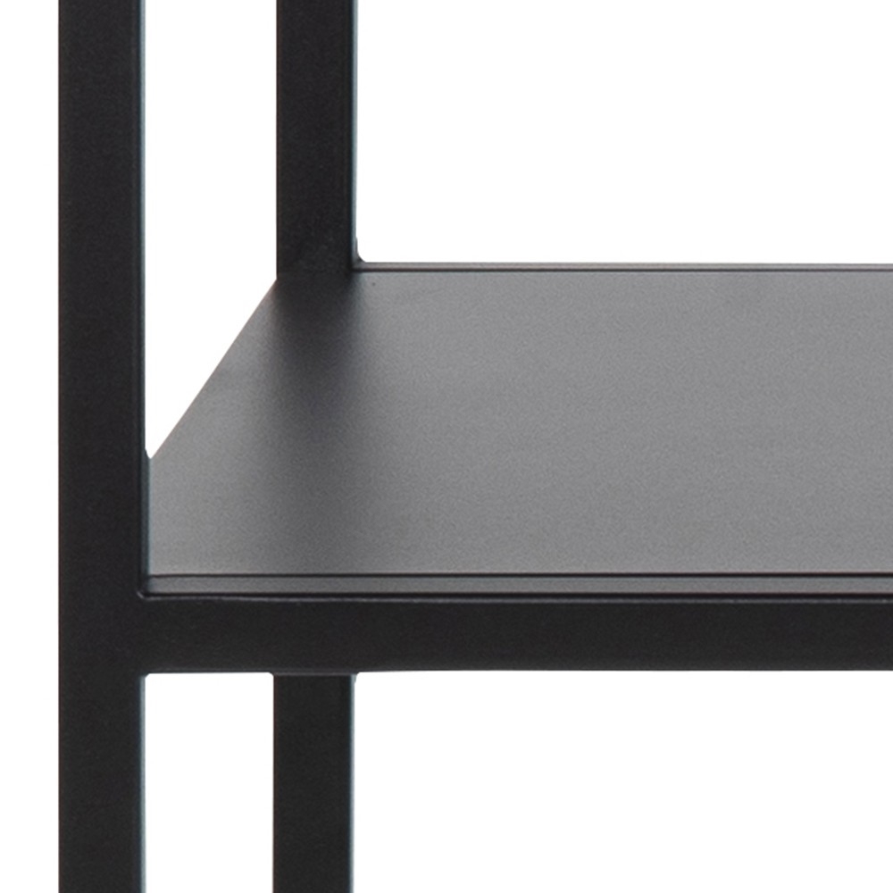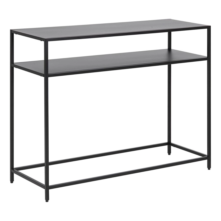 • Moderni konsoli selkeillä linjoilla tuo ripauksen eleganssia metallijalustansa ja jauhemaalattujen hyllyjensä ansiosta.