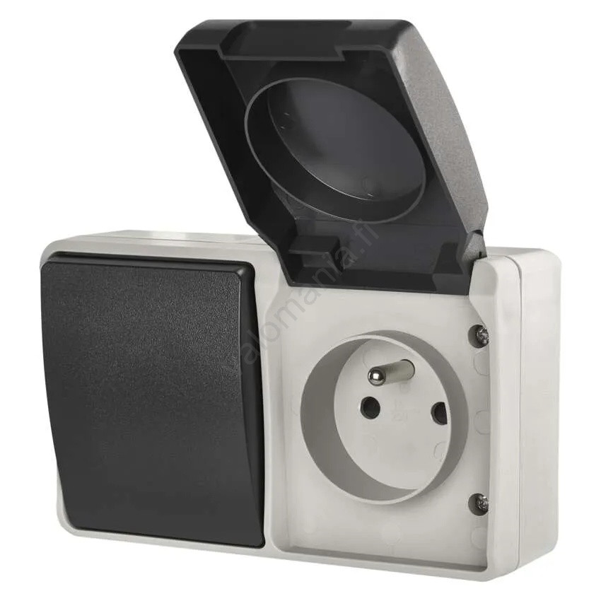 Kytkin kotitalouskäyttöön vaihtovirtainen nro 6 pistorasialla 250V/16A IP44 harmaa