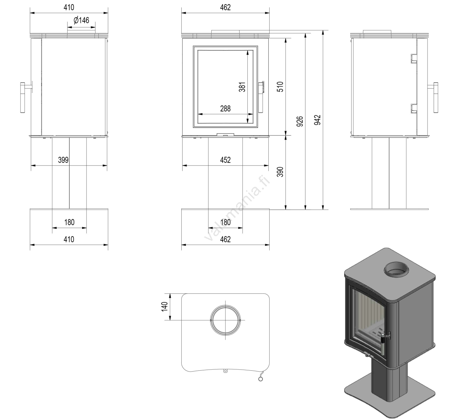 • Vapaasti seisovan uunin on oltava liitetty erilliseen savupiippuun.