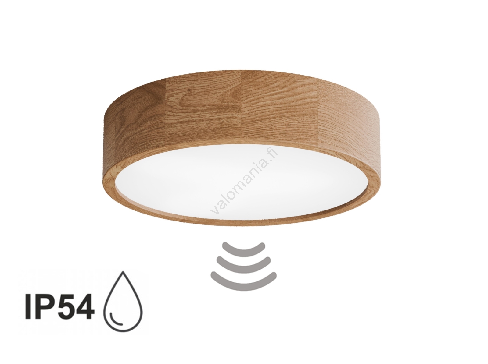 Kylpyhuoneen kattovalaisin liiketunnistimella CLEO 3xE27/24W/230V halkaisija 37,5 cm IP54 tammi